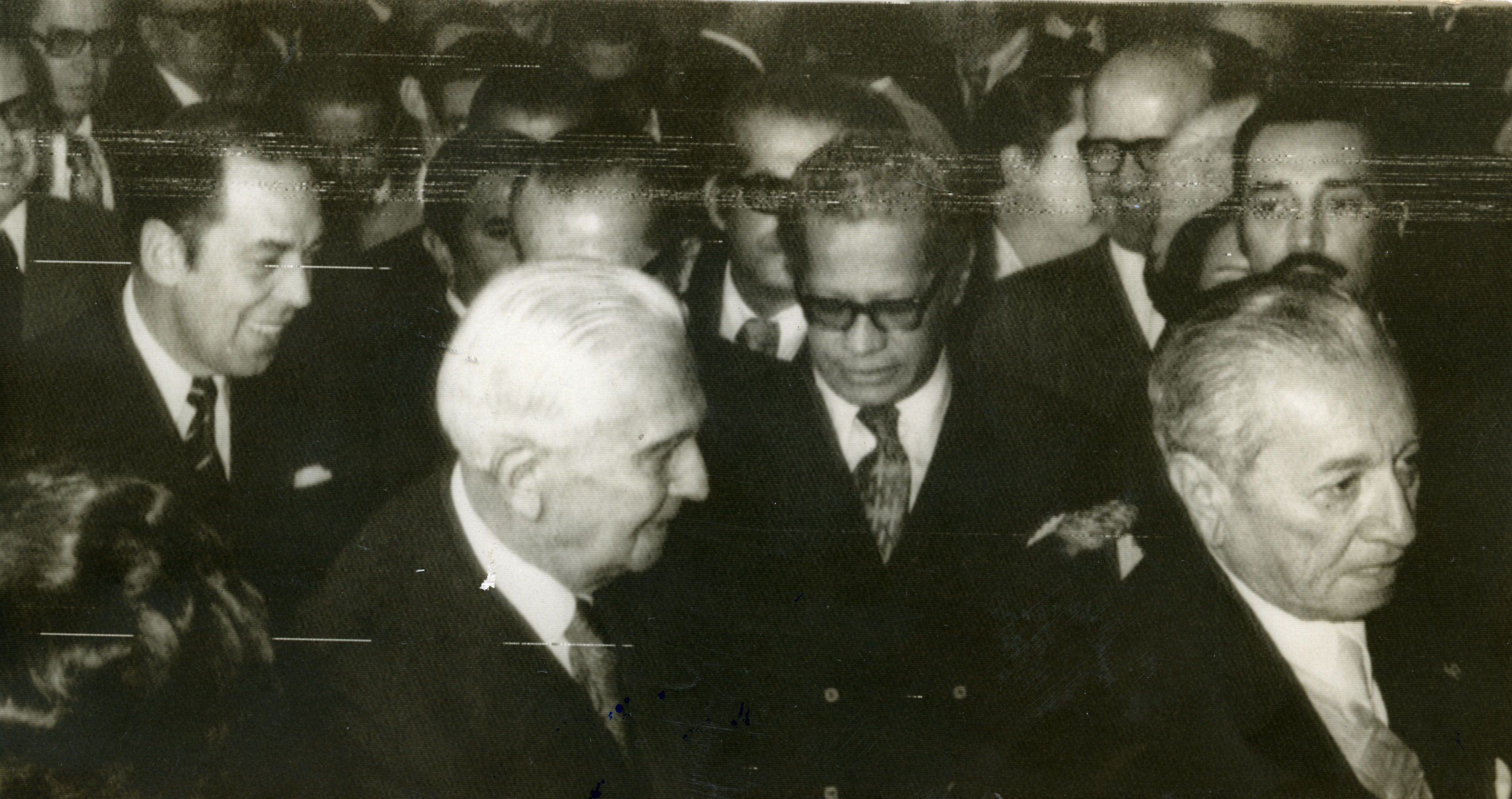 Momento Historico, Rafael Azuero Manchola asumía la presidencia de la Republica por ausencia del titular Misael Pastrana Borrero, quien viajo a Venezuela. En la fotografía en compañía el Alcalde de Santiago de Cali, Julio Riascos, parlamentario y el expresidente Mariano Ospina Perez. El Archivo del Patrimonio Fotográfico y Fílmico del Valle del Cauca es responsabilidad de la Biblioteca Departamental del Valle Jorge Garcés Borrero, por convenio de cooperación suscrito con la Secretaria del Cultura Departamental, con el fin de aunar esfuerzos para su conservación, preservación y divulgación del Archivo entre la comunidad Vallecaucana, especialmente entre los estudiantes e investigadores que visitan la Biblioteca, propiciando el su uso y consulta permanente. La universidad Icesi es un colaborador en el proceso de difusión, facilitando la tecnología que permite la consulta de las imágenes.