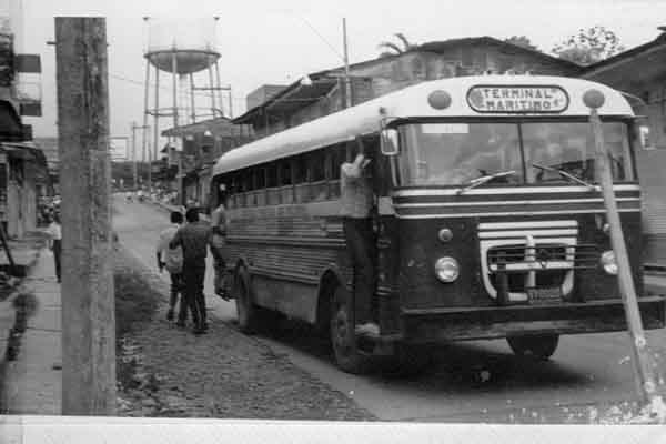 Bus de servicio público urbano en la calle Cundinamarca. Buenaventura, 1963.