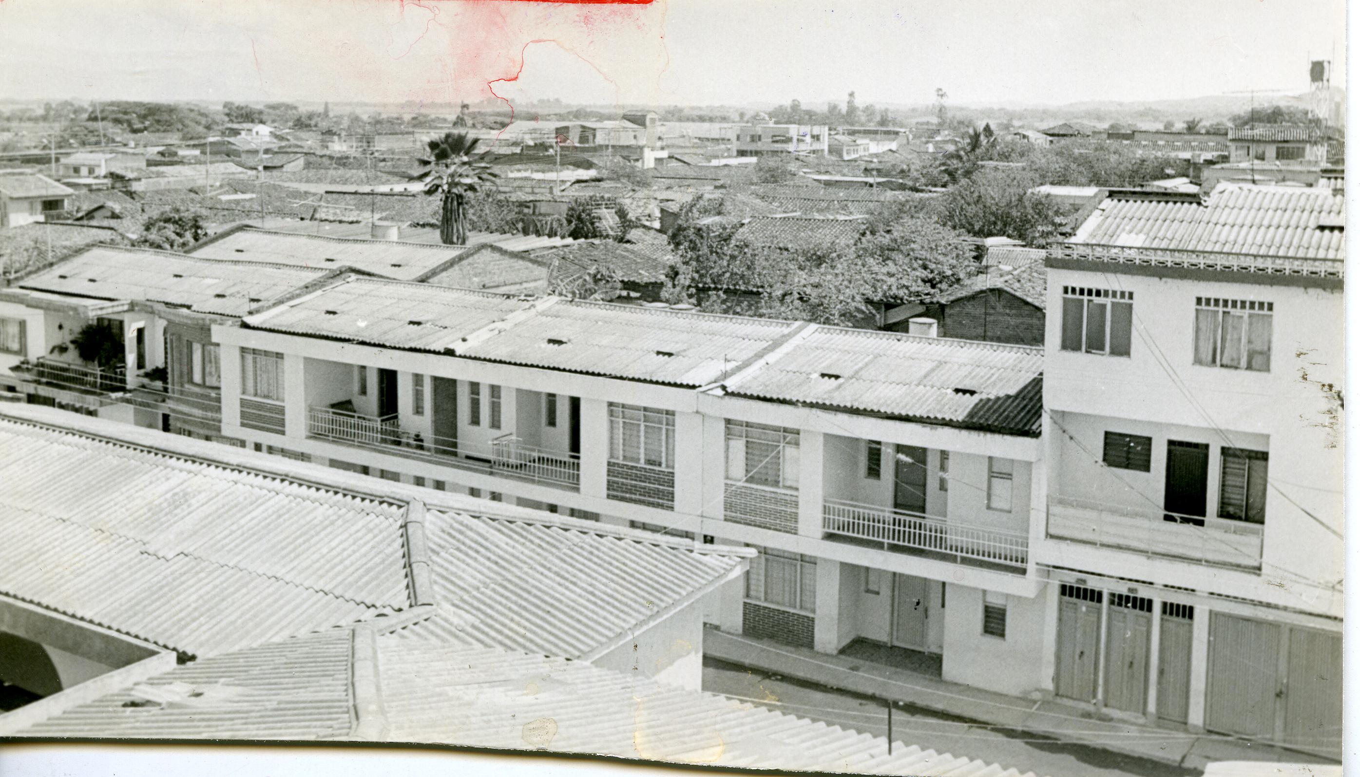 En la gráfica se observa una panorámica de algunas casas ubicadas en Zarzal. Se observan las fachadas y las copas de algunos árboles.