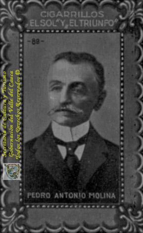 Pedro Antonio Molina, último gobernador del Cauca, antes del ordenamiento político administrativo que creó el Departamento del Valle del Cauca. Cromo de obsequio de cigarrillos El Sol y El Triunfo, Palmira. 1930.