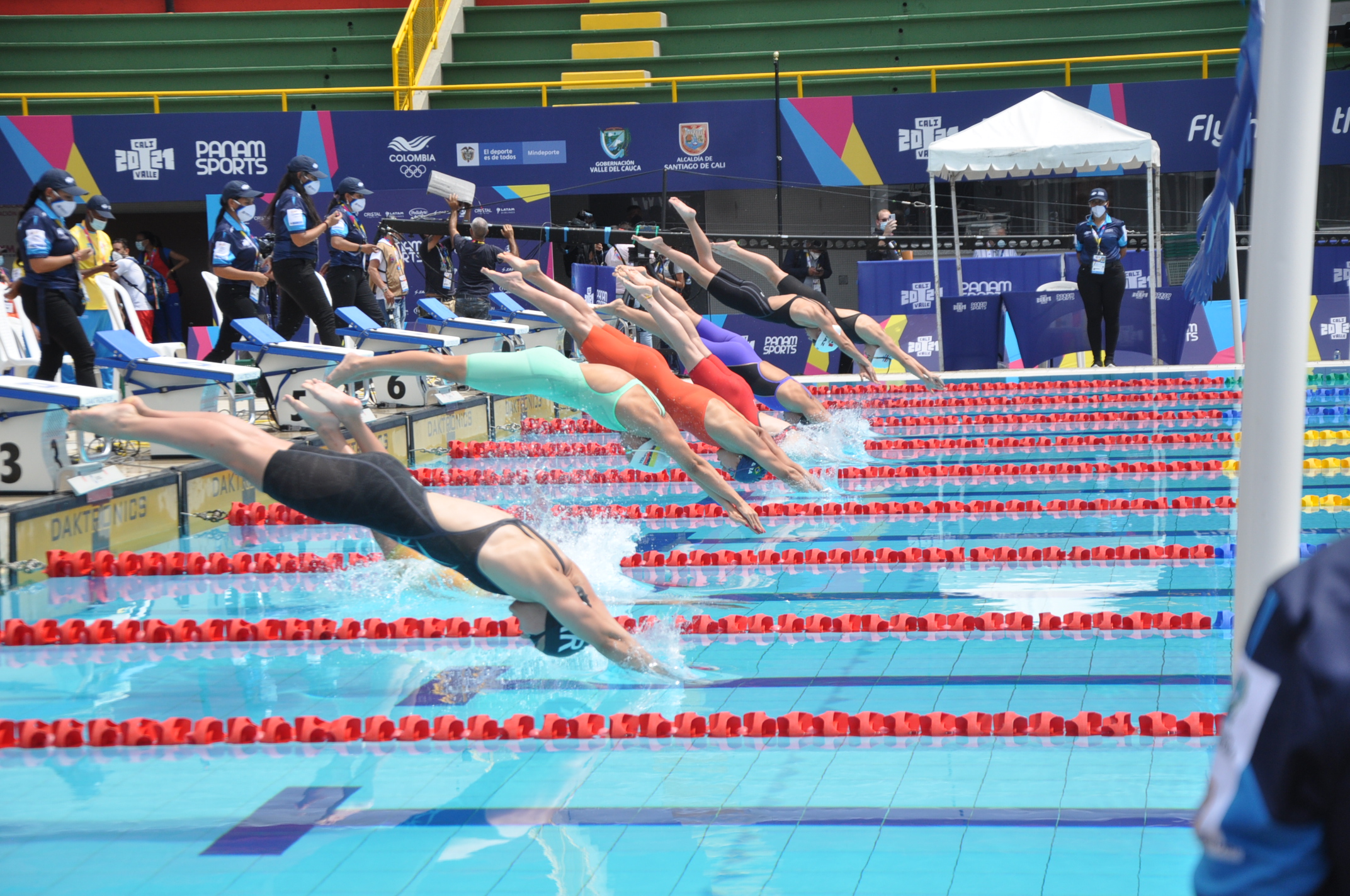 En el regsitro fotográfico podemos observar a las competidoras de natación lanzándose al agua para dar inicio a este reto de los "I Juegos Panamericanos Junior", que tuvieron lugar en la ciudad de Cali.