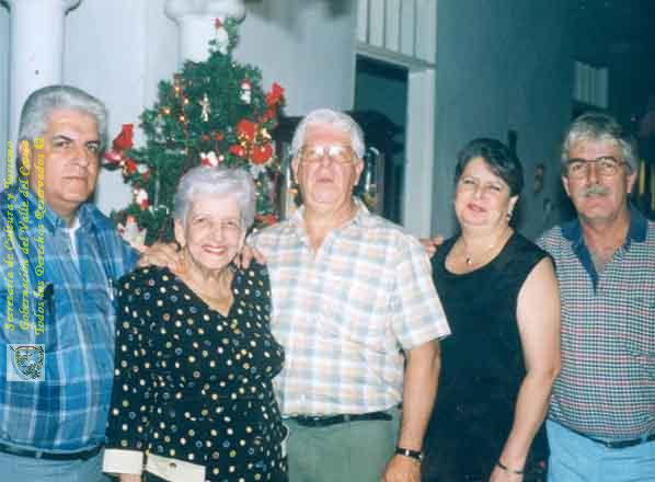 Familia Ramírez Lozano celebrando la navidad. De Izquierda a Derecha. Jorge Ramírez Lozano, Bertha Lozano Cruz de Ramírez, Apolinar Ramírez Lozano, Gloria Isabel Ramírez Lozano, Iván Ramírez Lozano. Tuluá. 1999.