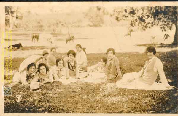 Foto Escarria (1940). Grupo de damas disfrutando de un soleado día de baño a orillas del río Cauca & 100370. SANTIAGO DE CALI: Biblioteca Departamental Jorge Garces Borrero.