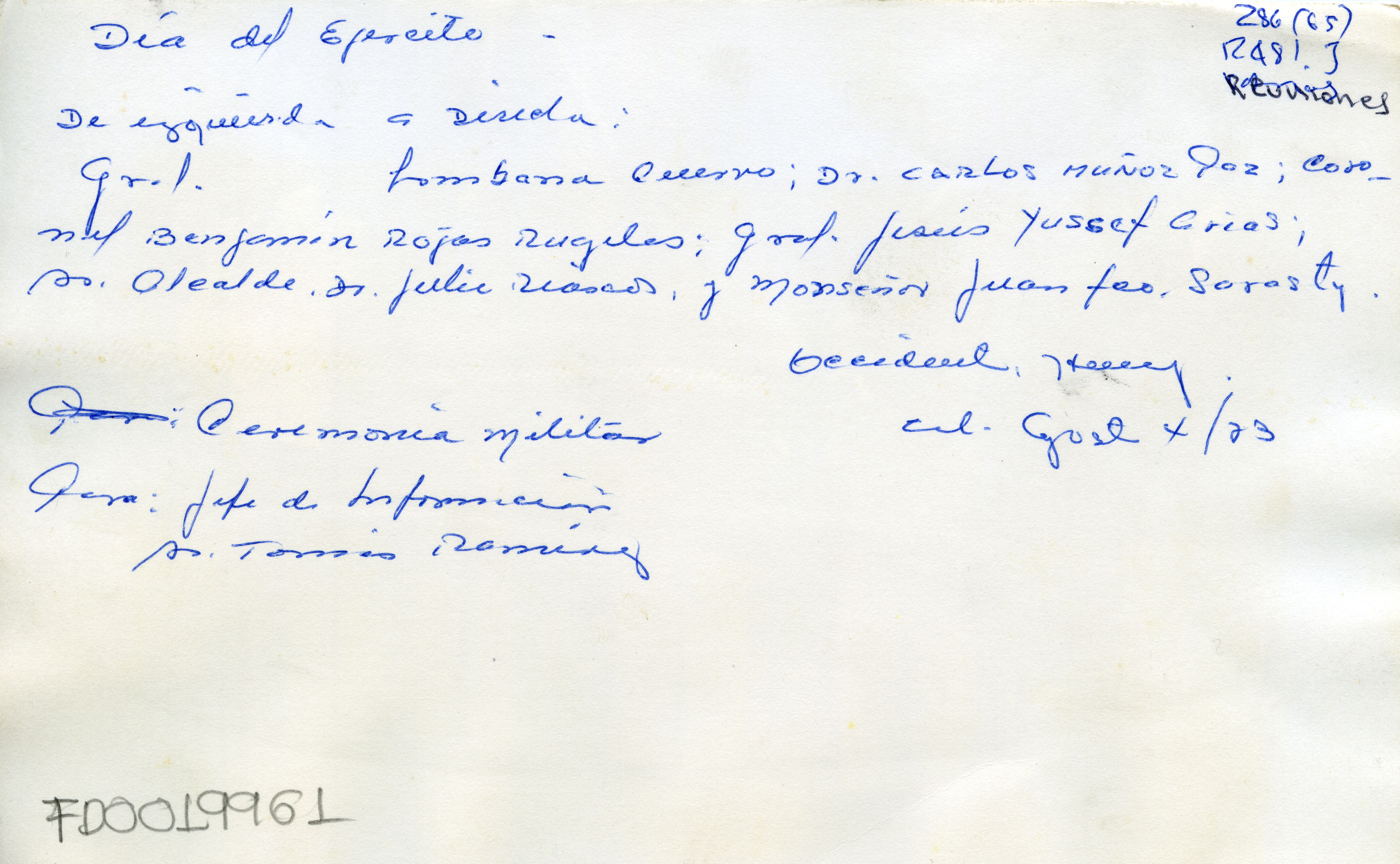 Ceremonia militar. De izquierda a derecha: General Lombana Cuervo; doctor Carlos Muñoz Paz, coronel Benjamin Rojas Rugeles; general Jesús Yuscet Arias; alcalde Julio Riascos, y Monseñor Juan Francisco Sarasty