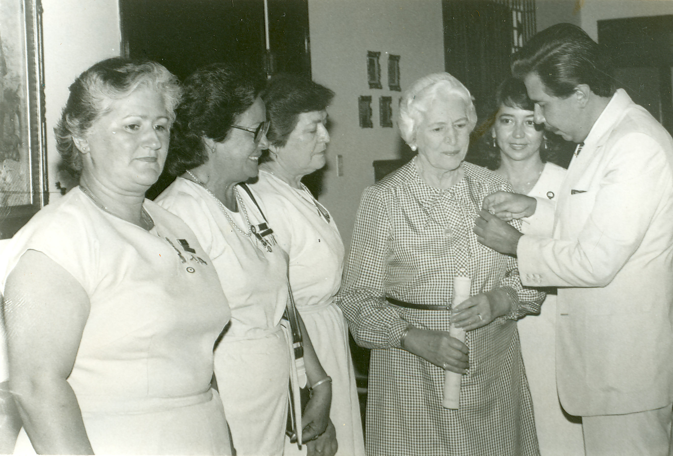 Julio Cruz Bueno, presidente de la Fundación Unión de Lucha Contra el Cáncer (Unicáncer), impone la condecoración Espada de Oro 10 Años a María Cristina Palau de Sarmiento, por los servicios prestados a la entidad. Otras prestantes damas fueron igualmente condecoradas. El Archivo del Patrimonio Fotográfico y Fílmico del Valle del Cauca es responsabilidad de la Biblioteca Departamental del Valle Jorge Garcés Borrero, por convenio de cooperación suscrito con la Secretaría de Cultura Departamental, con el fin de aunar esfuerzos para la conservación, preservación y divulgación del Archivo entre la comunidad Vallecaucana, especialmente entre los estudiantes e investigadores que visitan la Biblioteca, propiciando su uso y consulta permanente. La universidad Icesi es un colaborador en el proceso de difusión, facilitando la tecnología que permite la consulta de las imágenes.
