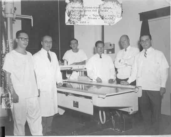 Director Dr.Alfonso Tejada Sánchez y subdirector Aquiles Yibirin. Personal Científico del departamento de Radiología. Santiago de Cali, C . 1.957