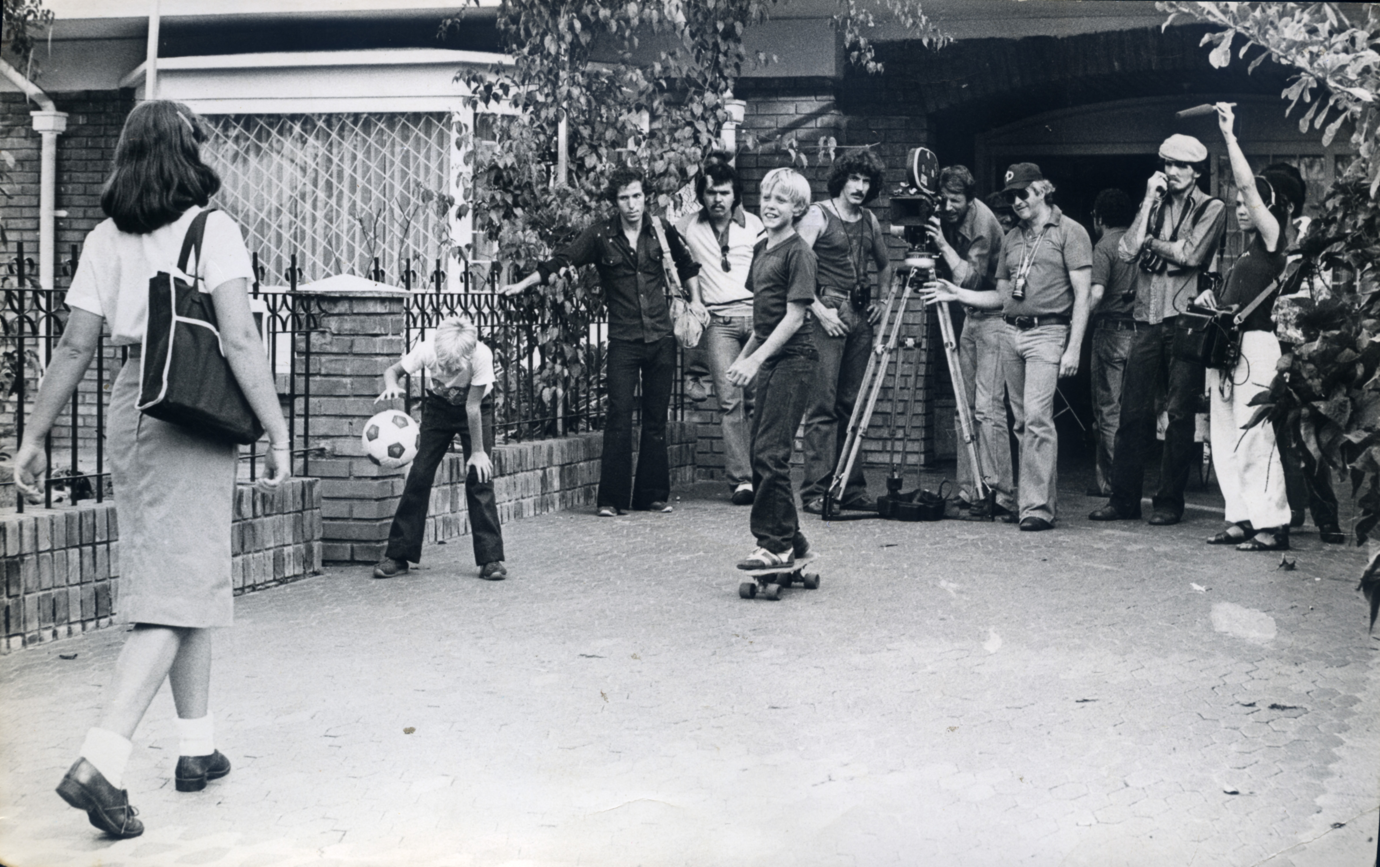 Filmación de la película El Lado Oscuro del Nevado, en primer plano los hijos de Eric Leupin. Dirigida por Pascual Guerrero.