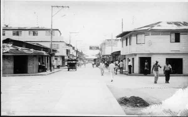 ANIBAL OCORO (1945). La Calle Valencia y la esquina de Pacho Reina -nombre con que se conocía al dueño de una tienda de abarrotes que quedaba en esta esquina- & 604084. BUENAVENTURA: Biblioteca Departamental Jorge Garces Borrero.