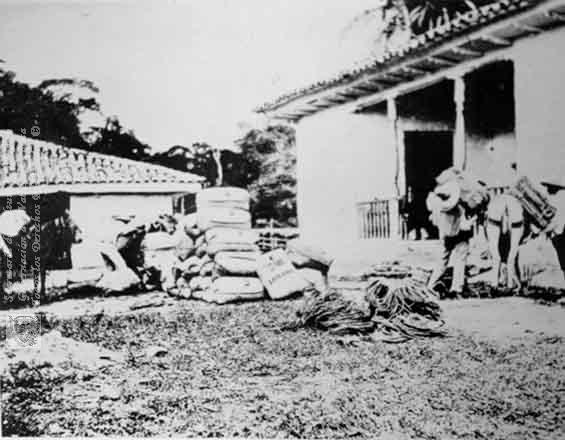 Cargando café para exportación a Europa en La Manuelita, 1891