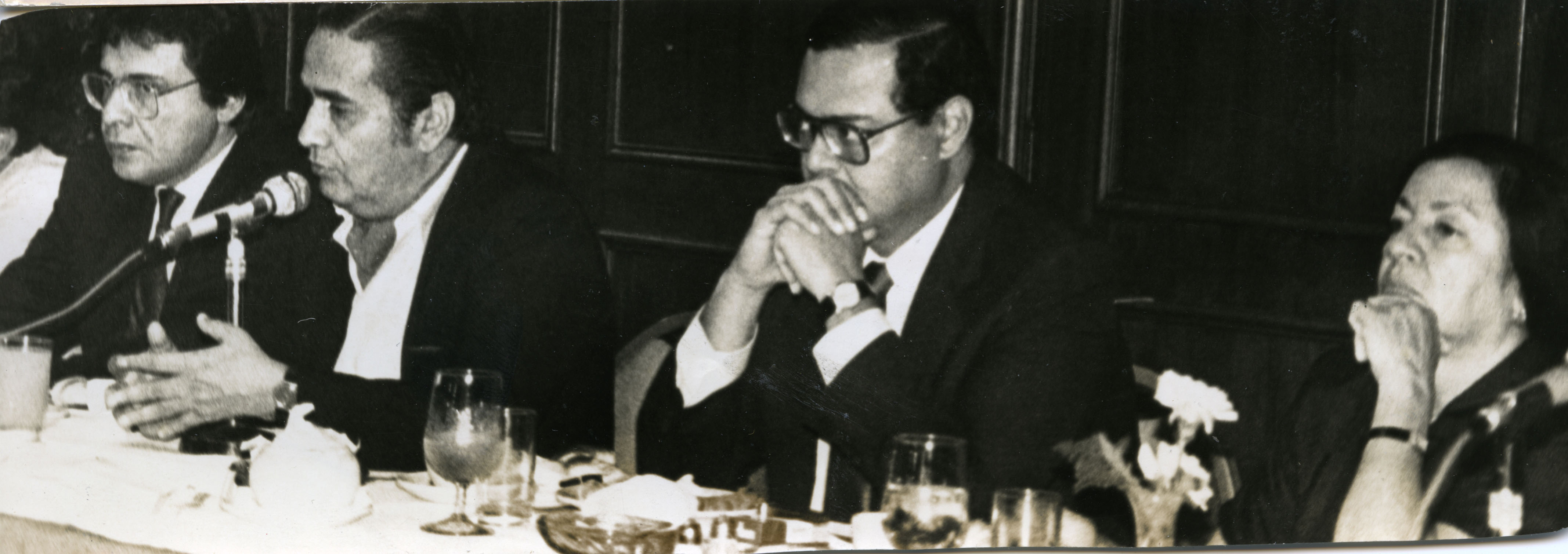Lanzamiento del libro del senador Carlos Holmes Trujillo "Chile: trunfo y tragedia de la revolución socialista", en compañía de sus hijos Carlos Holmes, José Renán y sra Genoveva de Trujillo. El Archivo del Patrimonio Fotográfico y Fílmico del Valle del Cauca es responsabilidad de la Biblioteca Departamental del Valle Jorge Garcés Borrero, por convenio de cooperación suscrito con la Secretaria del Cultura Departamental, con el fin de aunar esfuerzos para su conservación, preservación y divulgación del Archivo entre la comunidad Vallecaucana, especialmente entre los estudiantes e investigadores que visitan la Biblioteca, propiciando el su uso y consulta permanente. La universidad Icesi es un colaborador en el proceso de difusión, facilitando la tecnología que permite la consulta de las imágenes.