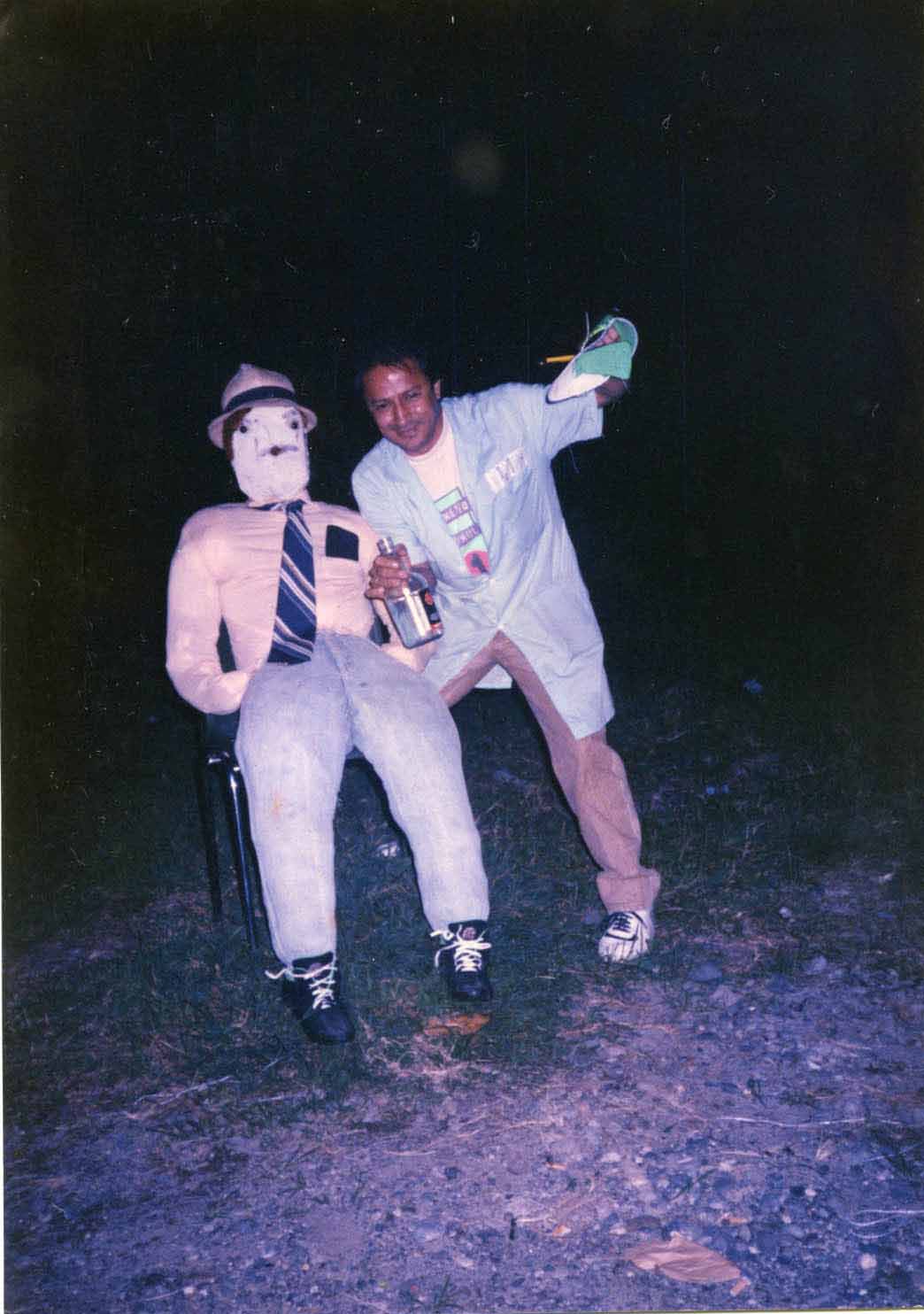 Ramiro Rosero Castillo con su muñeco de año viejo. Ulloa