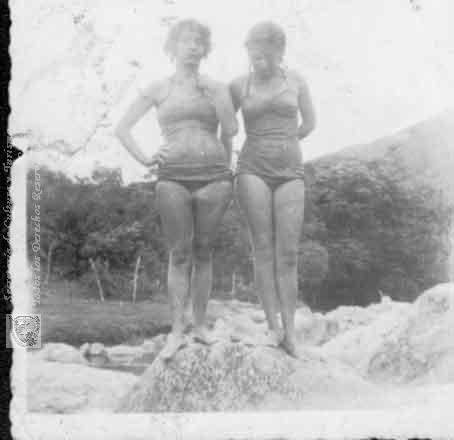 Erlinda y Marlene Montaño, de paseo al río Frío. Lugar por identificar, 1950.