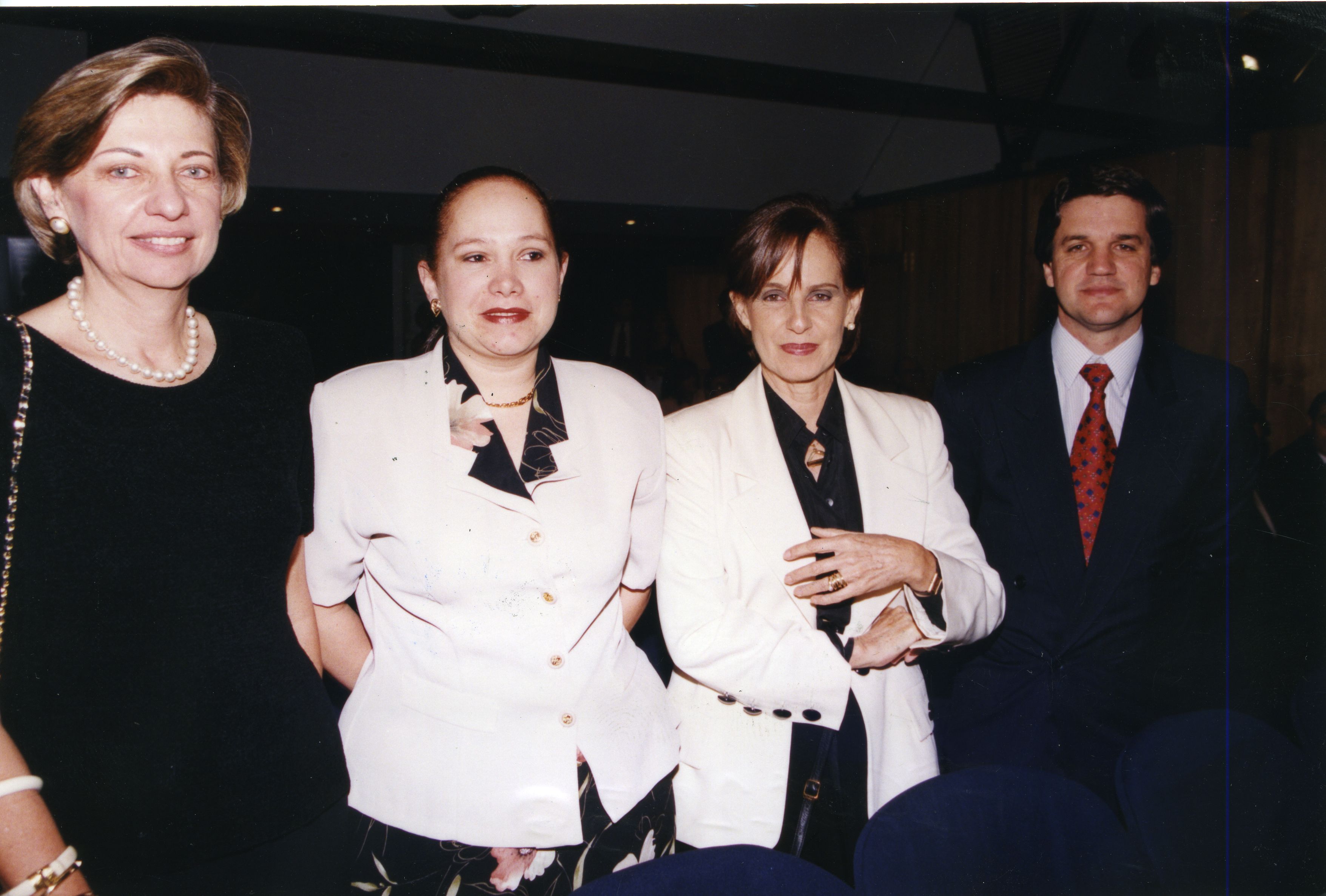 Fotografía plano medio de asistentes al lanzamiento del Nuevo Diario Occidente, de izquierda a derecha María Consuelo Díaz, Gloria Mallarino de Zambrano y Felipe Ocampo.