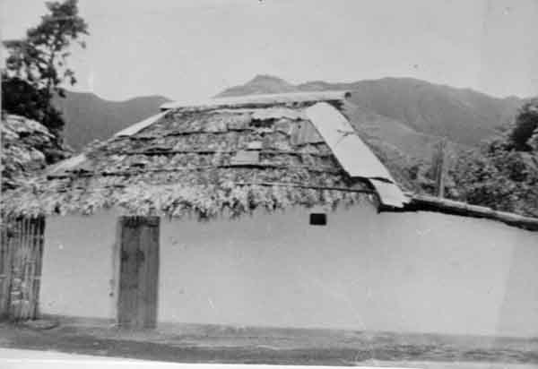 Casa de adobe y techo de pasa propiedad de Rosendo Barco cuya construcción data del siglo XIX. Vijes C.1950