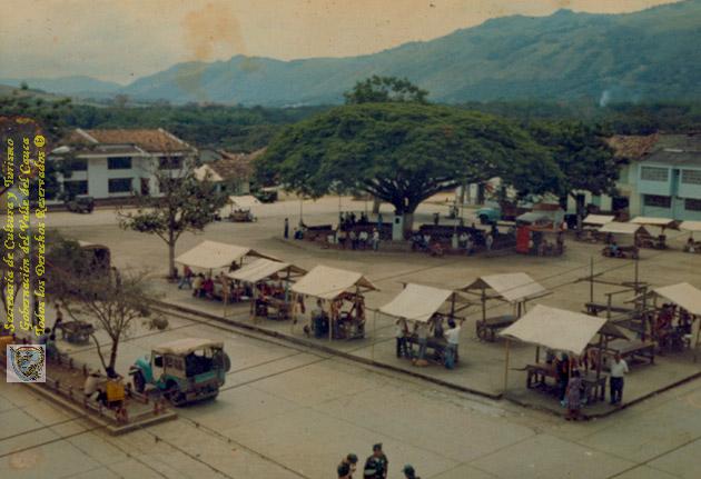 Mercado en la plaza principal de Restrepo, C. 1970.