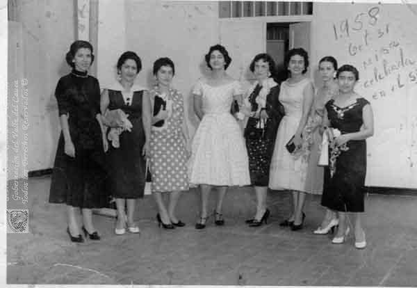 Funcionarias del Servicio de Inteligencia Colombiana (actual Departamento Administrativo de Seguridad). Carmen Elisa Chaux, Blanca Quintana, Aida de Holguín y Graciela Hernández. Cali. 1958.