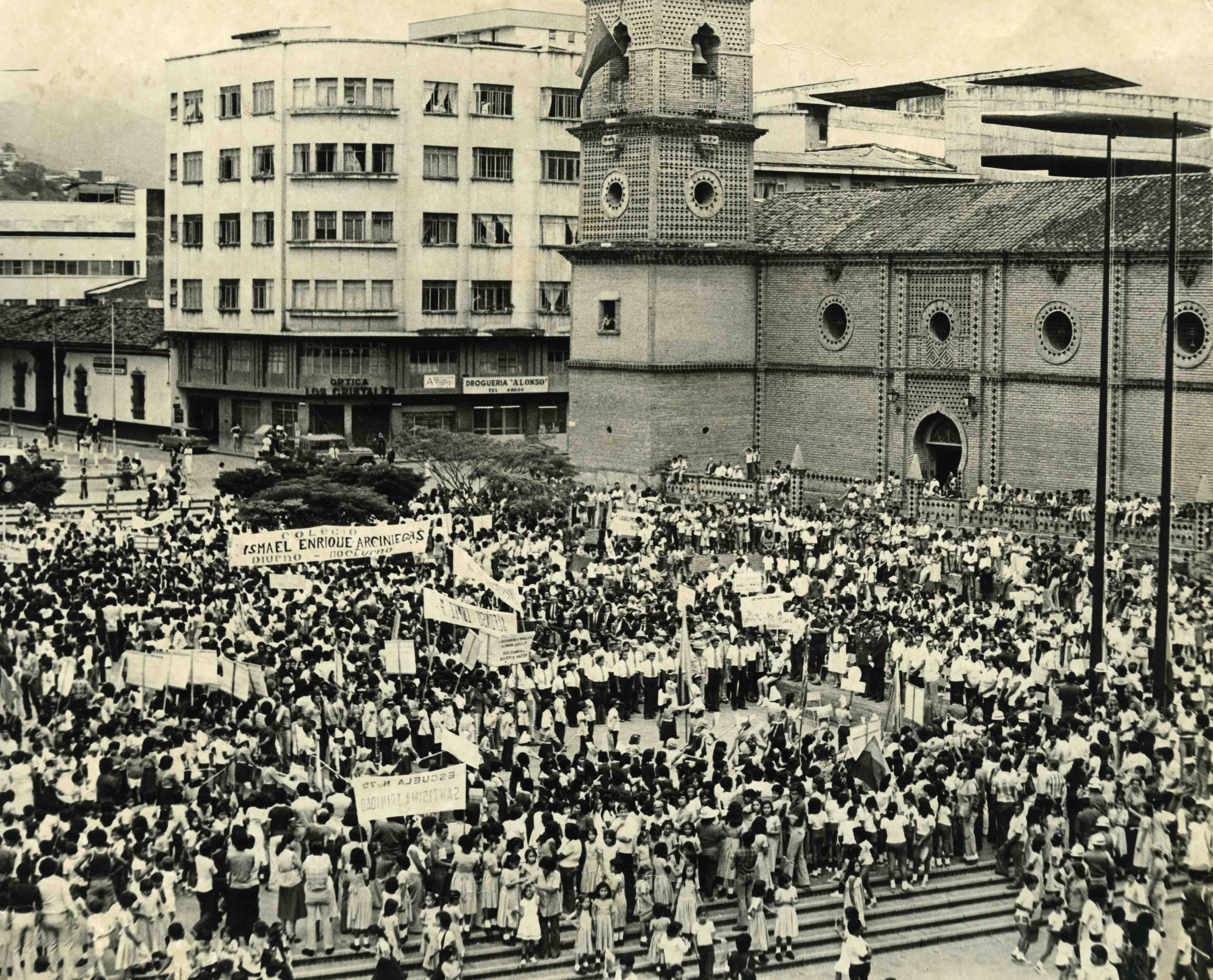 Caminata de la patria, en la plazoleta san francisco // El Archivo del Patrimonio Fotográfico y Fílmico del Valle del Cauca es responsabilidad de la Biblioteca Departamental del Valle Jorge Garcés Borrero, por convenio de cooperación suscrito con la Secretaria de Cultura Departamental, con el fin de aunar esfuerzos para su conservación, preservación y divulgación del Archivo entre la comunidad Vallecaucana, especialmente entre los estudiantes e investigadores que visitan la Biblioteca, propiciando su uso y consulta permanente. La universidad Icesi es un colaborador en el proceso de difusión, facilitando la tecnología que permite la consulta de las imágenes.