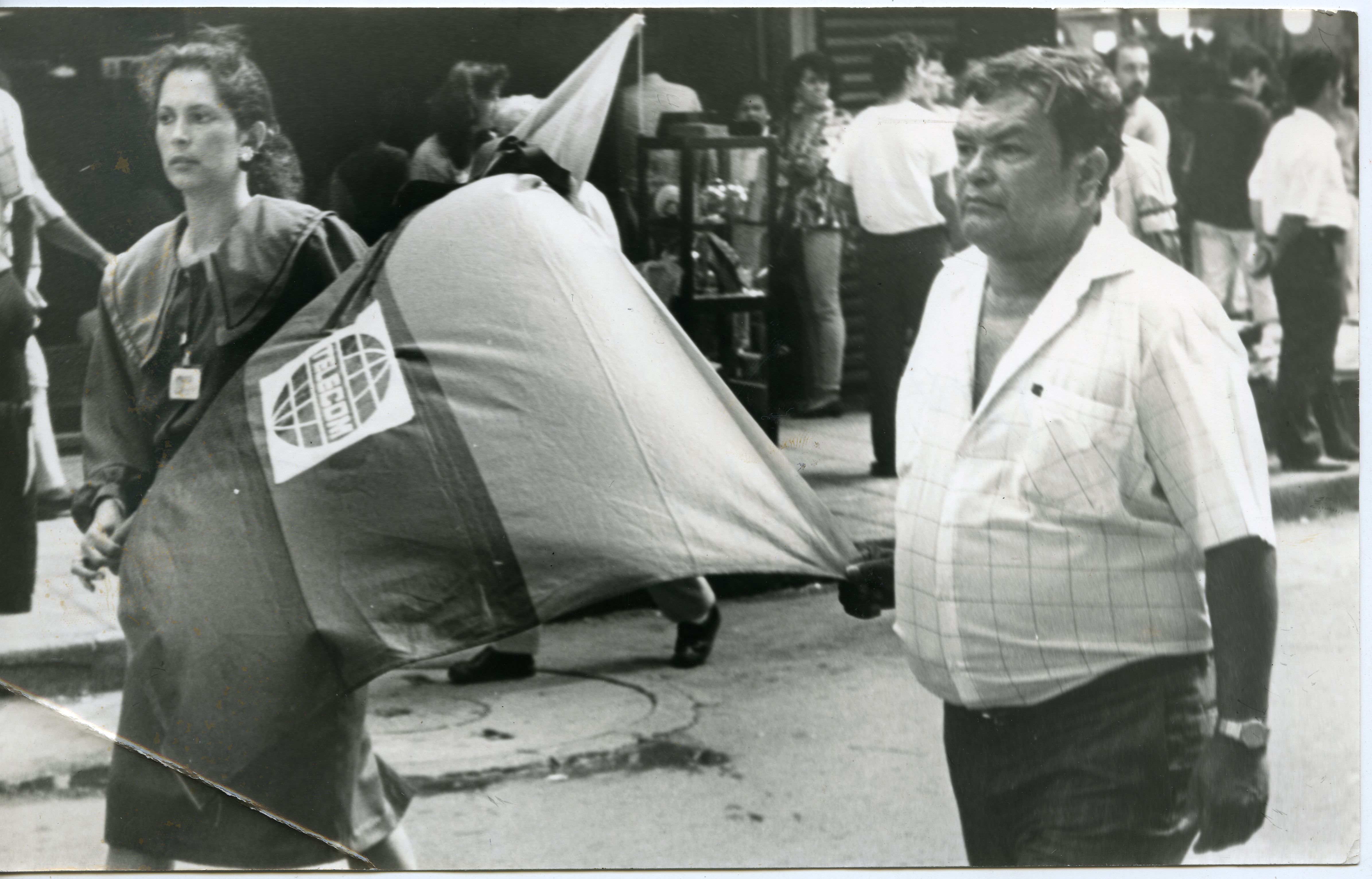 La fotografía muestra una escena de la marcha del silencio de TELECOM, destaca una bandera de Colombia con el símbolo de TELECOM.