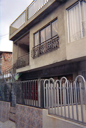 Primer plano. Exterior día. Toma transversal de casa. Realce de líneas en fachada.