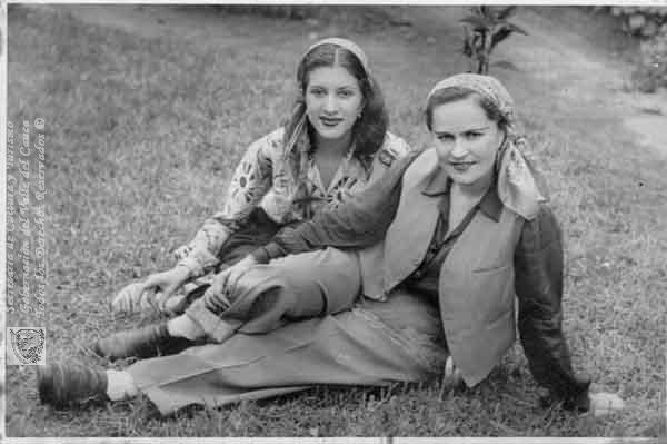 Elvira Londoño y una amiga. Pradera, fecha por identificar.