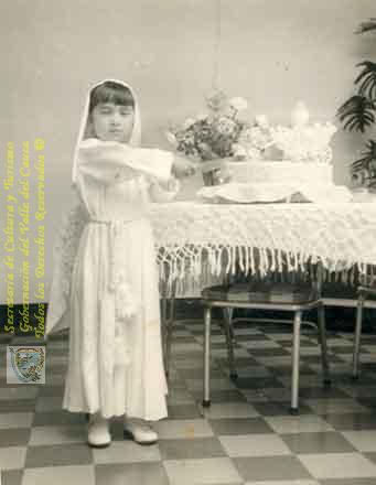 Cruz Elena Gómez, el día de su primera comunión. Buga. 1966
