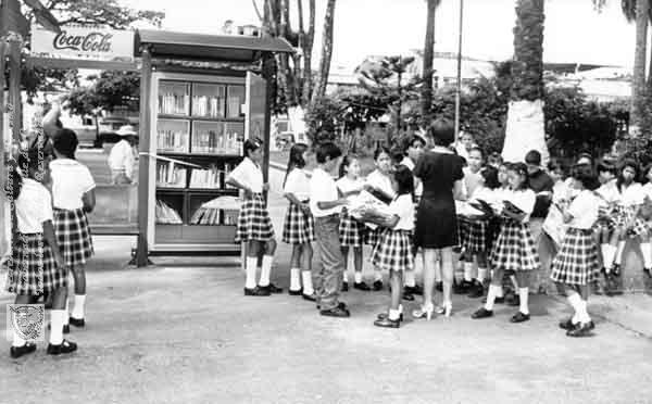 Parador para leer, visitado por las estudiantes. Bolívar, C. 1990