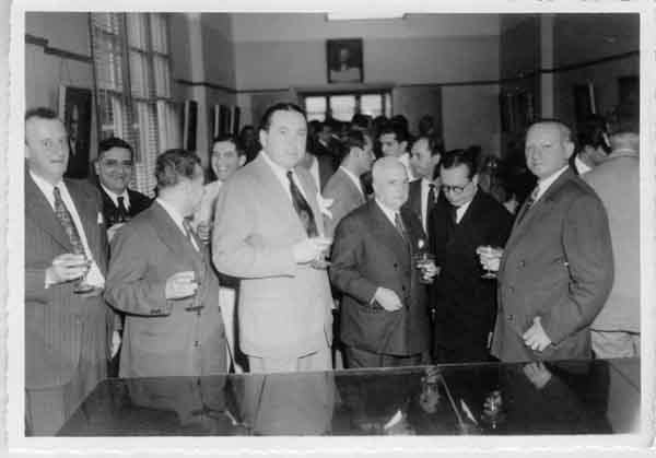 Dirigentes y empresarios vallecaucanos: Hernando Bueno Delgado, Hernando Navia, Luís Eduardo Lourido, Hernando Caicedo, Alvaro H. Caicedo González, Luís Alfonso Delgado, Rodolfo de Roux. Santiago de Cali, C. 1955.