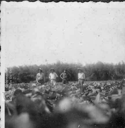 Trabajadores de la colonia japonesa observando sus cosechas en Corinto-Cauca