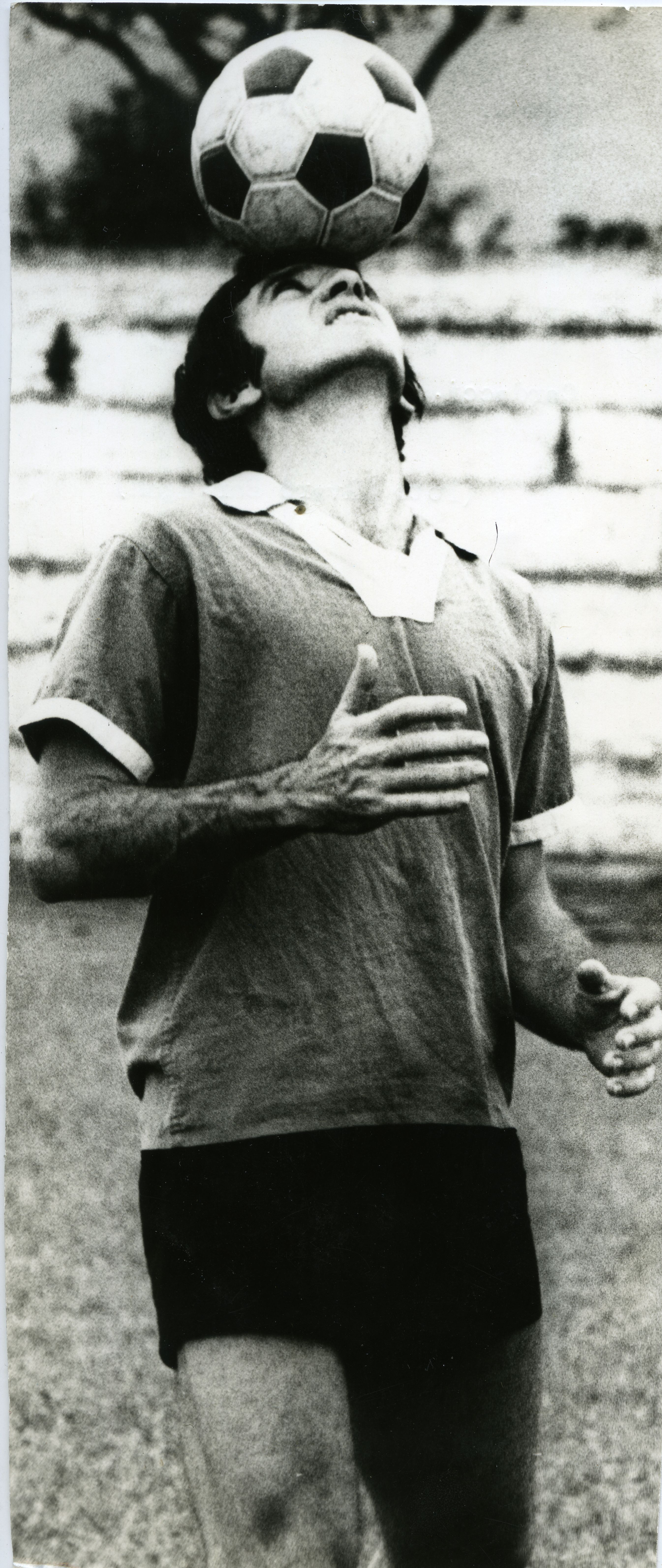 Alberto Cardacci, jugador del Deportivo Cali. Se aprecia dominando el balón con la cabeza