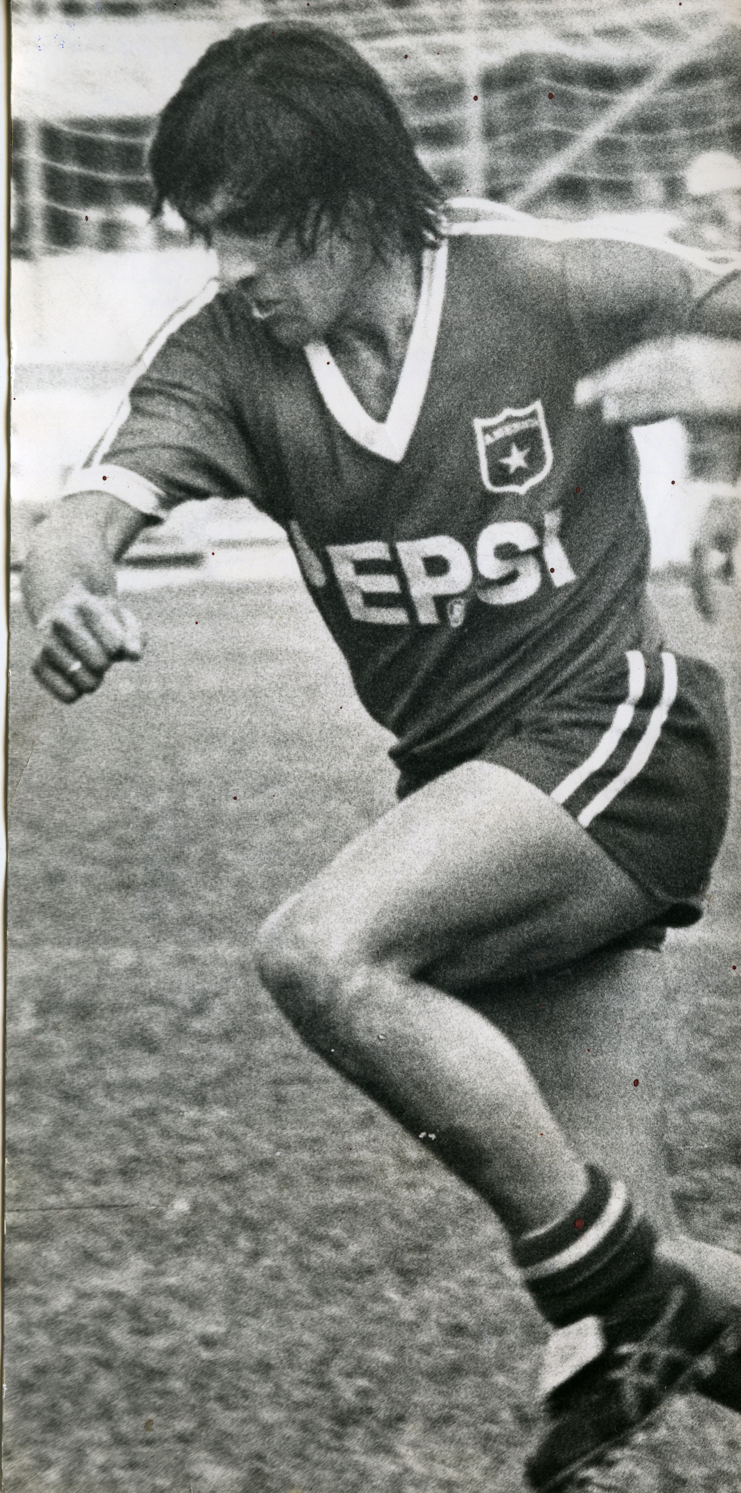 En la gráfica se observa a Roque Raúl Alfaro, futbolista del América de Cali, corriendo en una cancha.