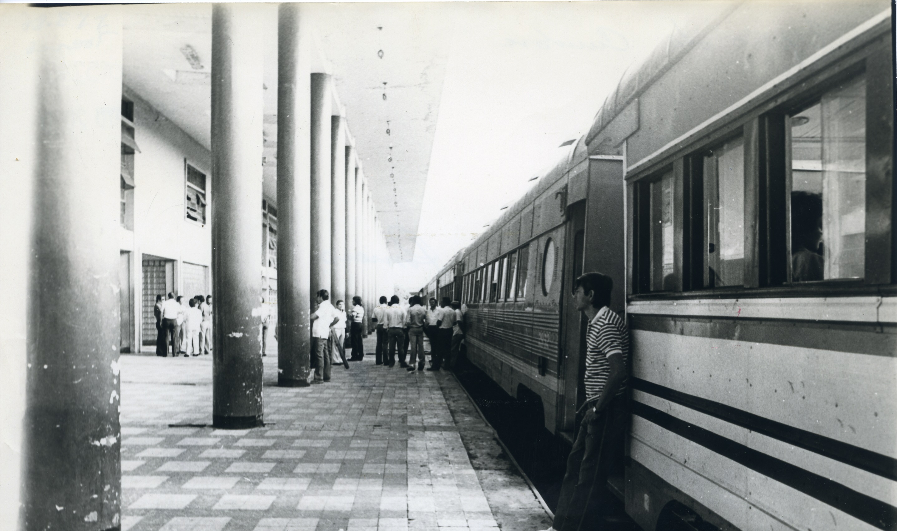 Pasajeros en la Estación de tren. Ferrocarril del Pacífico, expreso la cumbre
