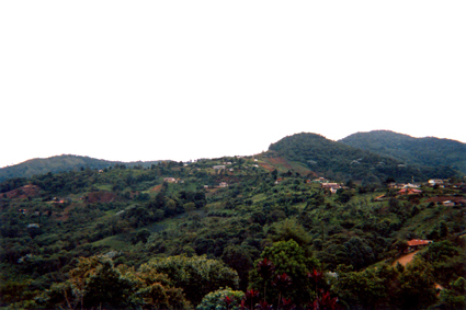 Vista panorámica donde se aprecian las montañas cubiertas de vegetación frondosa, del corregimiento la paz.