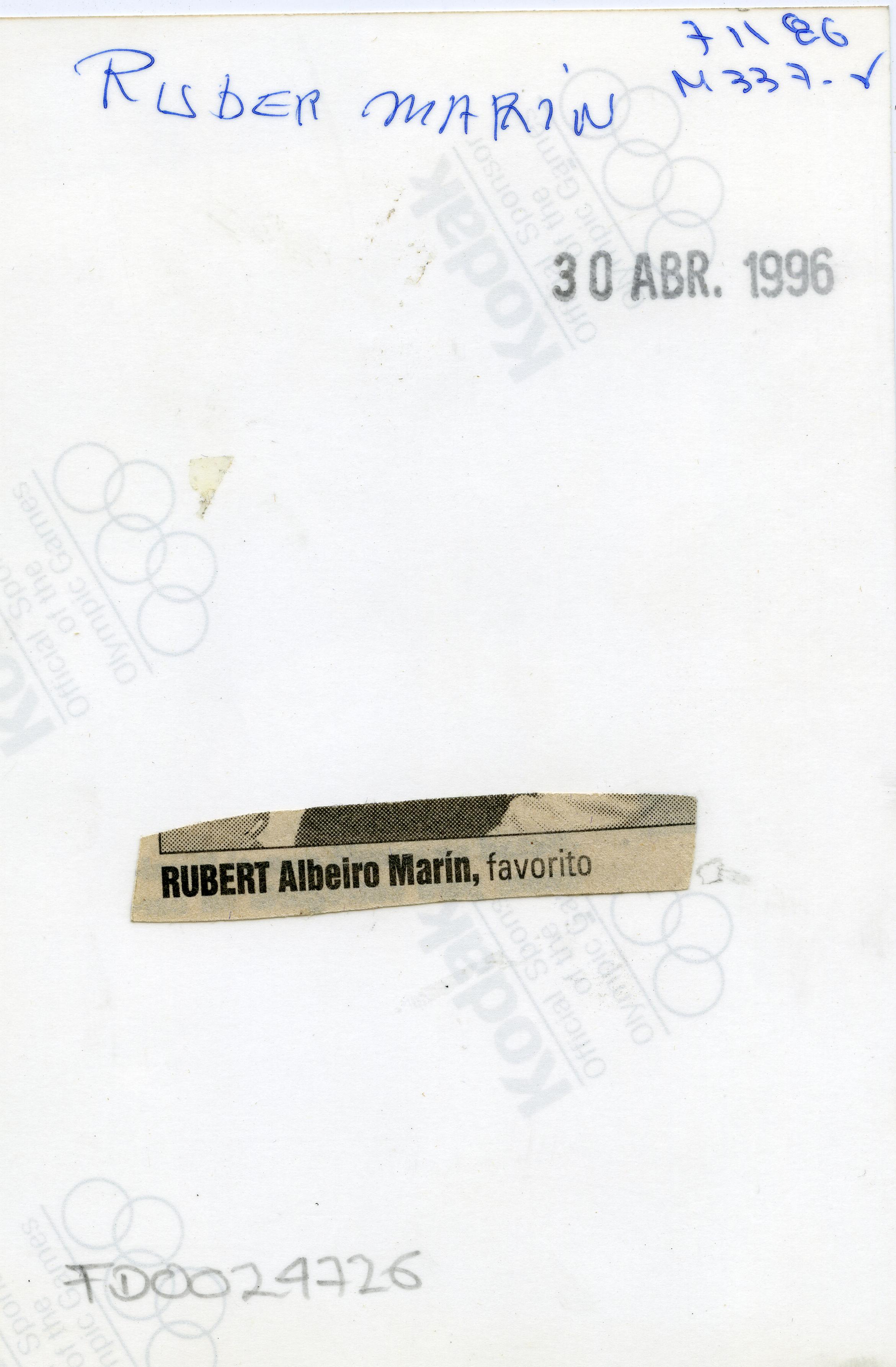 Al reverso de la fotografía se anexa recorte: Ruber Albeiro Marín, favorito