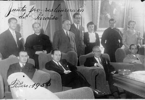Miembros de la Junta Pro- restauración de la Casa de la Sierra en la Hacienda El Paraiso". Santiago de Cali, 1950.