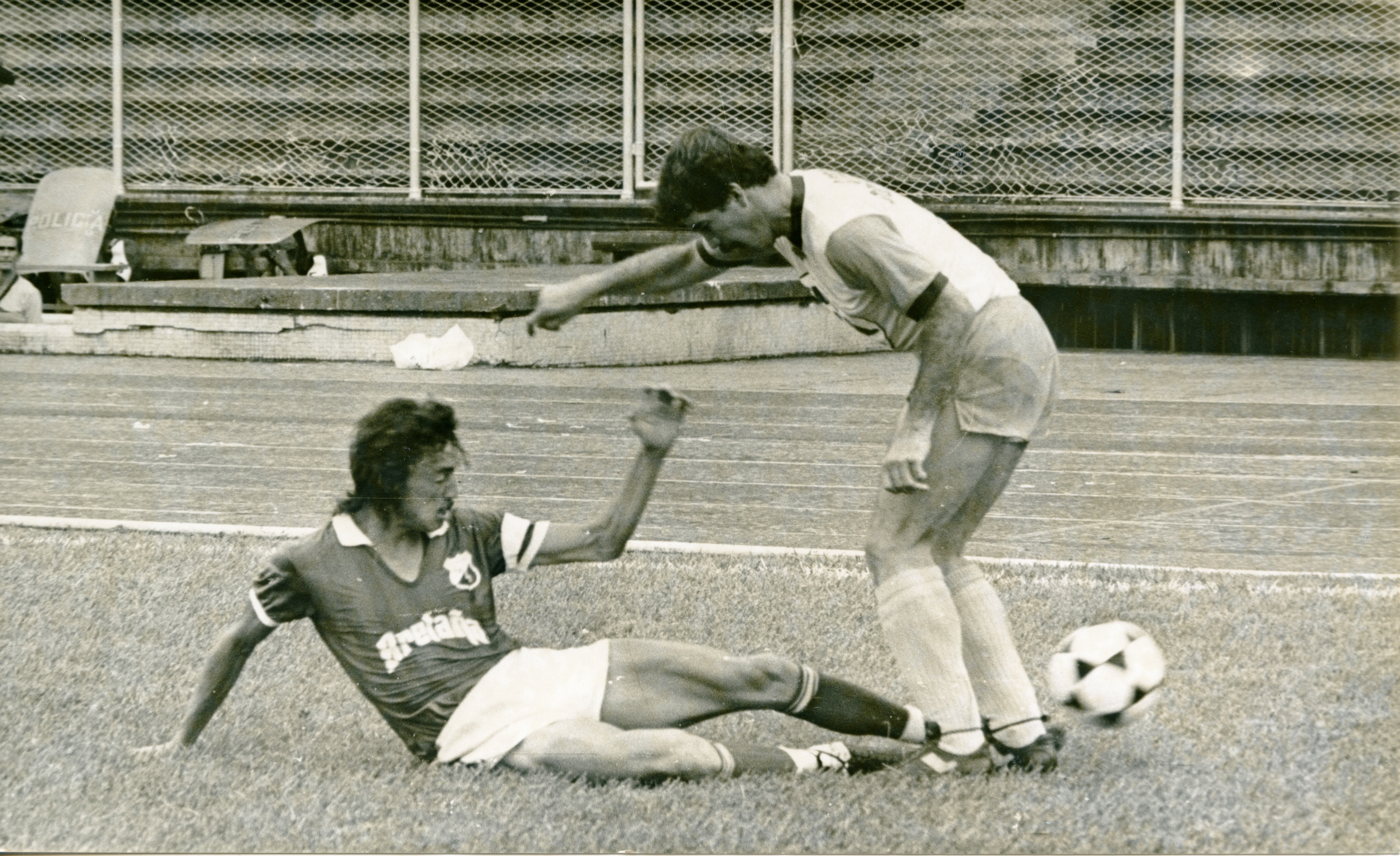 Partido de fútbol Deportivo Cali. Barrida de Carlos Mario Hoyos