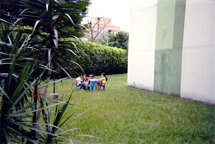 Paz Dávalos, Z. (2005). Infantes reunidos en zona verde de unidad residencial. Santiago de Cali: Biblioteca Departamental Jorge Garces Borrero.