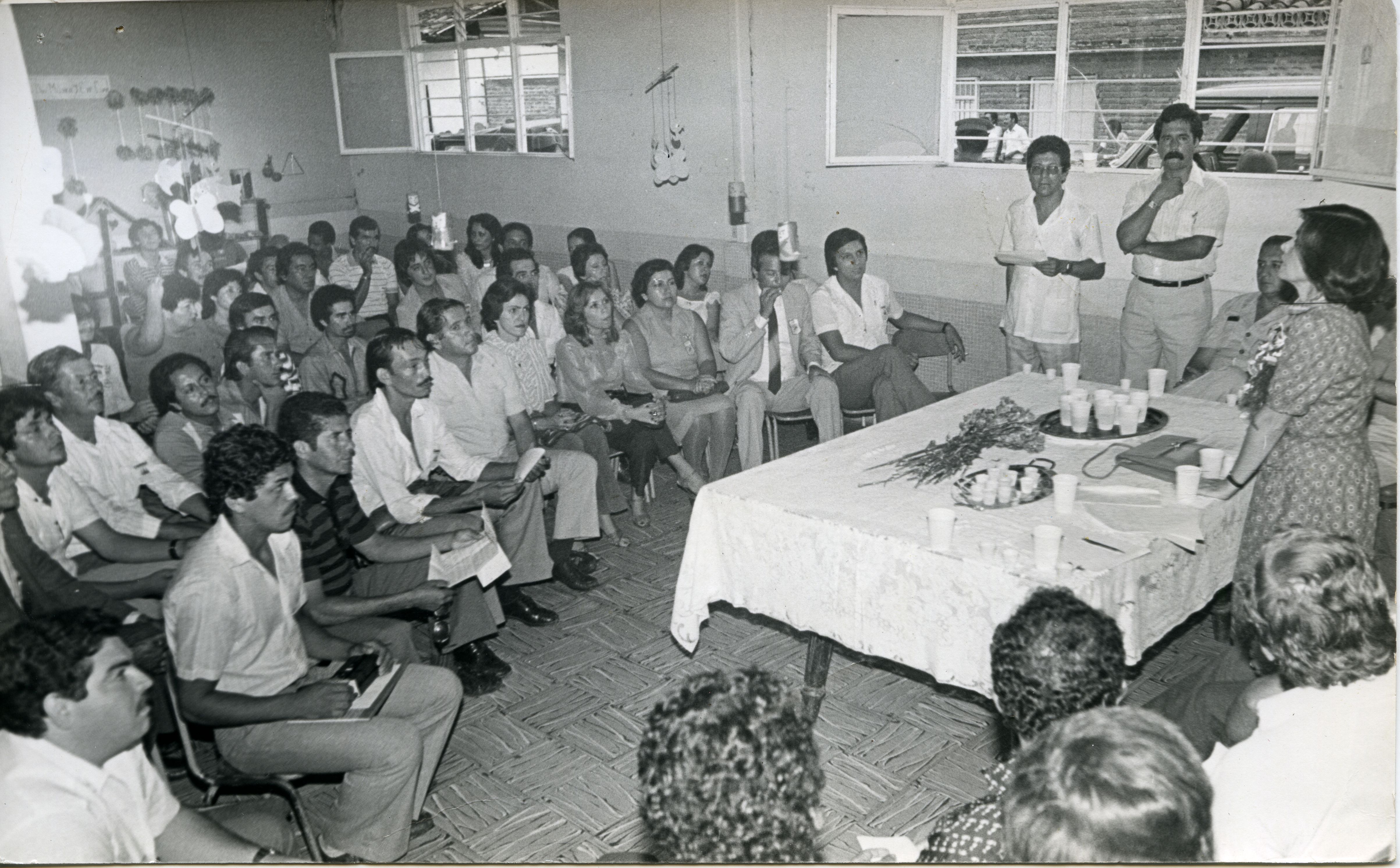 "Reverso: Riofrio. Una calurosa recepción tributó esta localidad a la gobernadora del Valle, Doris Eder de Zambrano, quien visitó a Riofrio para tomar parte en el Programa de Extensión Social, PES. En la gráfica de abajo, la mandataria seccional preside un foro comunitario, en el cual participan los alcaldes y líderes de los municipios de Riofrio y Trujillo. La señora de Zambrano se comprometió a nombre de su administración, atender las peticiones formuladas por la comunidad."