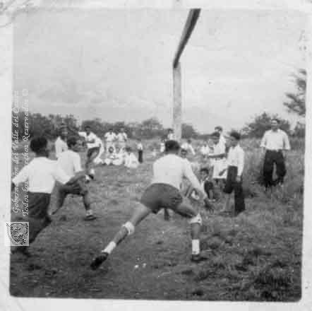 Equipo de futbol Liberty en plena acción deportiva. 1968