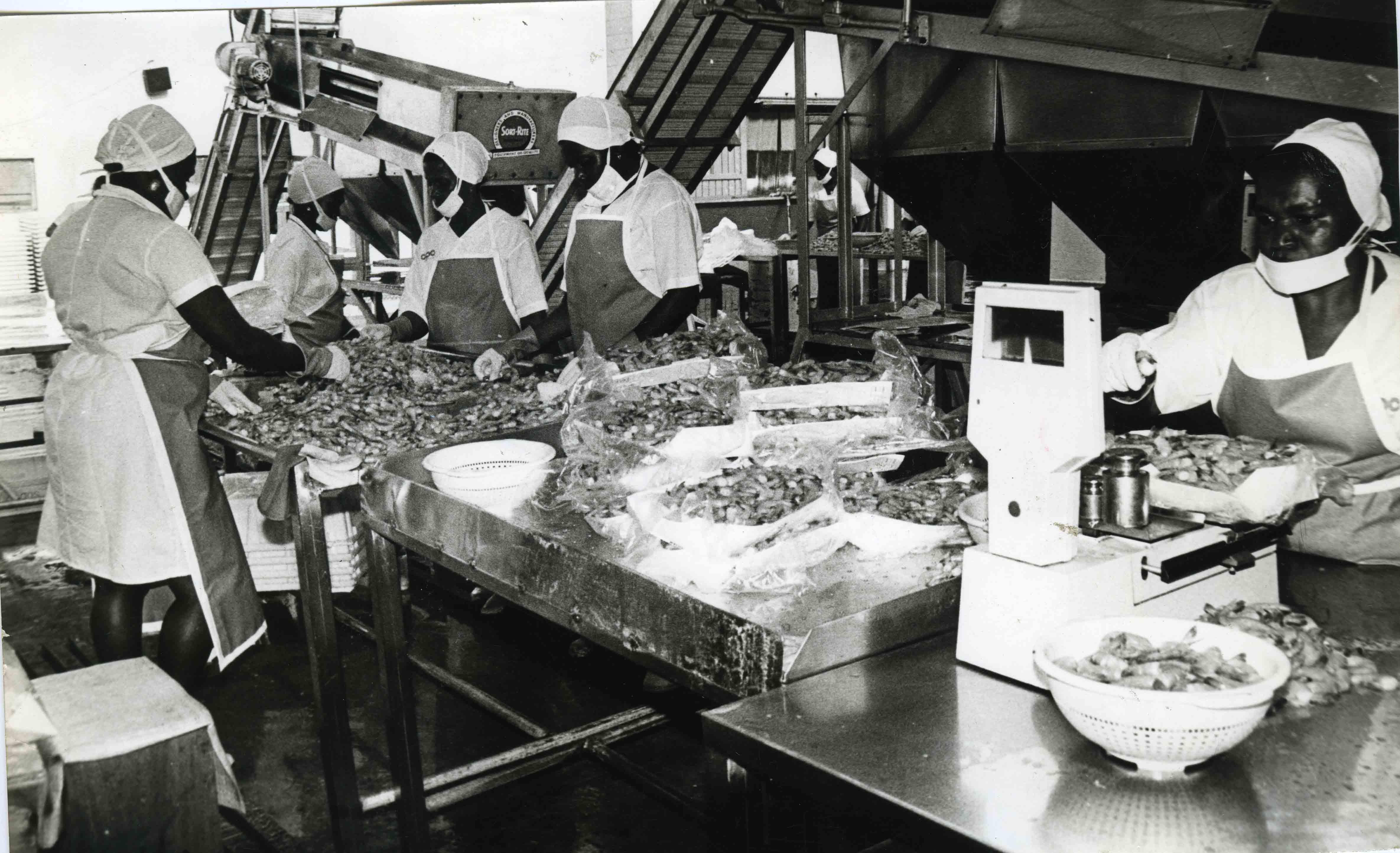 El camarón es una de las especies marinas más apetecidas que debe ser su explotación controlada para evitar la extinción. En la gráfica se observa el proceso de clasificación y separación del camarón. El Archivo del Patrimonio Fotográfico y Fílmico del Valle del Cauca es responsabilidad de la Biblioteca Departamental del Valle Jorge Garcés Borrero, por convenio de cooperación suscrito con la Secretaria del Cultura Departamental, con el fin de aunar esfuerzos para su conservación, preservación y divulgación del Archivo entre la comunidad Vallecaucana, especialmente entre los estudiantes e investigadores que visitan la Biblioteca, propiciando el su uso y consulta permanente. La universidad Icesi es un colaborador en el proceso de difusión, facilitando la tecnología que permite la consulta de las imágenes.