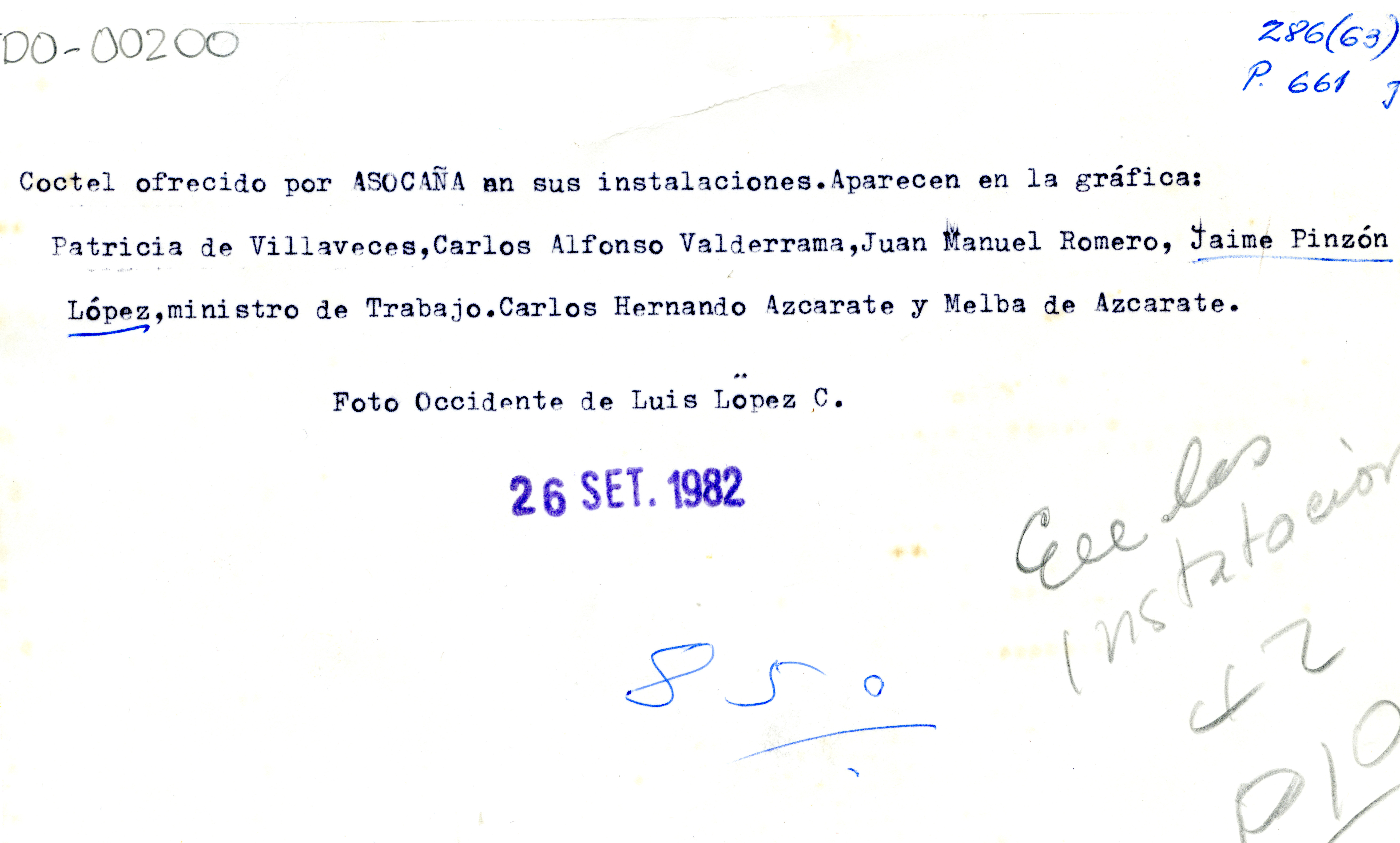 Coctel ofrecido por Asocaña. Asocaña: Asociación de Cultivadores de Caña de Azúcar de Colombia, fundada el 12 de febrero de 1959. El Archivo del Patrimonio Fotográfico y Fílmico del Valle del Cauca es responsabilidad de la Biblioteca Departamental del Valle Jorge Garcés Borrero, por convenio de cooperación suscrito con la Secretaria del Cultura Departamental, con el fin de aunar esfuerzos para su conservación, preservación y divulgación del Archivo entre la comunidad Vallecaucana, especialmente entre los estudiantes e investigadores que visitan la Biblioteca, propiciando el uso y consulta permanente. La universidad Icesi es un colaborador en el proceso de difusión, facilitando la tecnología que permite la consulta de las imágenes.