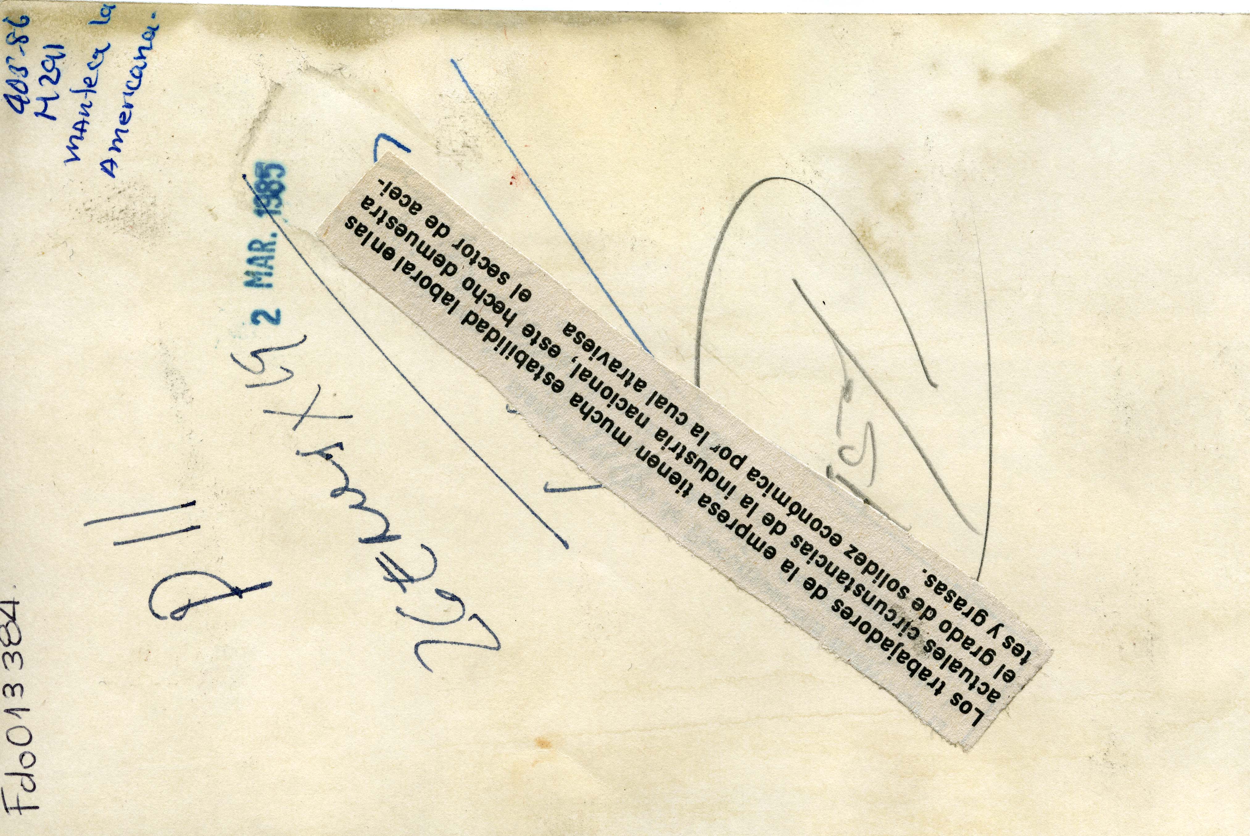 | dc.description.abstract | Al reverso de la fotografía se anexa el recorte."Los trabajadores de la empresa tienen mucha estabilidad laboral en las actuales circunstancias de la industria nacional, este hecho demuestra el grado de solidez económica por la cual atraviesa el sector de aceites y grasas. | spa |