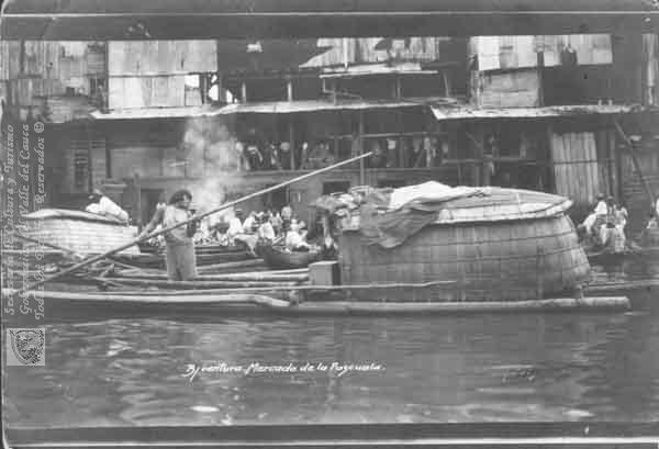 Indígena chola dirigiendo una canoa por el Paso de La Pascuala