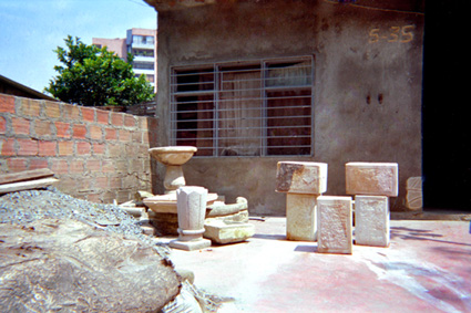 Plano medio. Se visualizan obras de mampostería y en el fondo se aprecia la fachada de una vivienda.