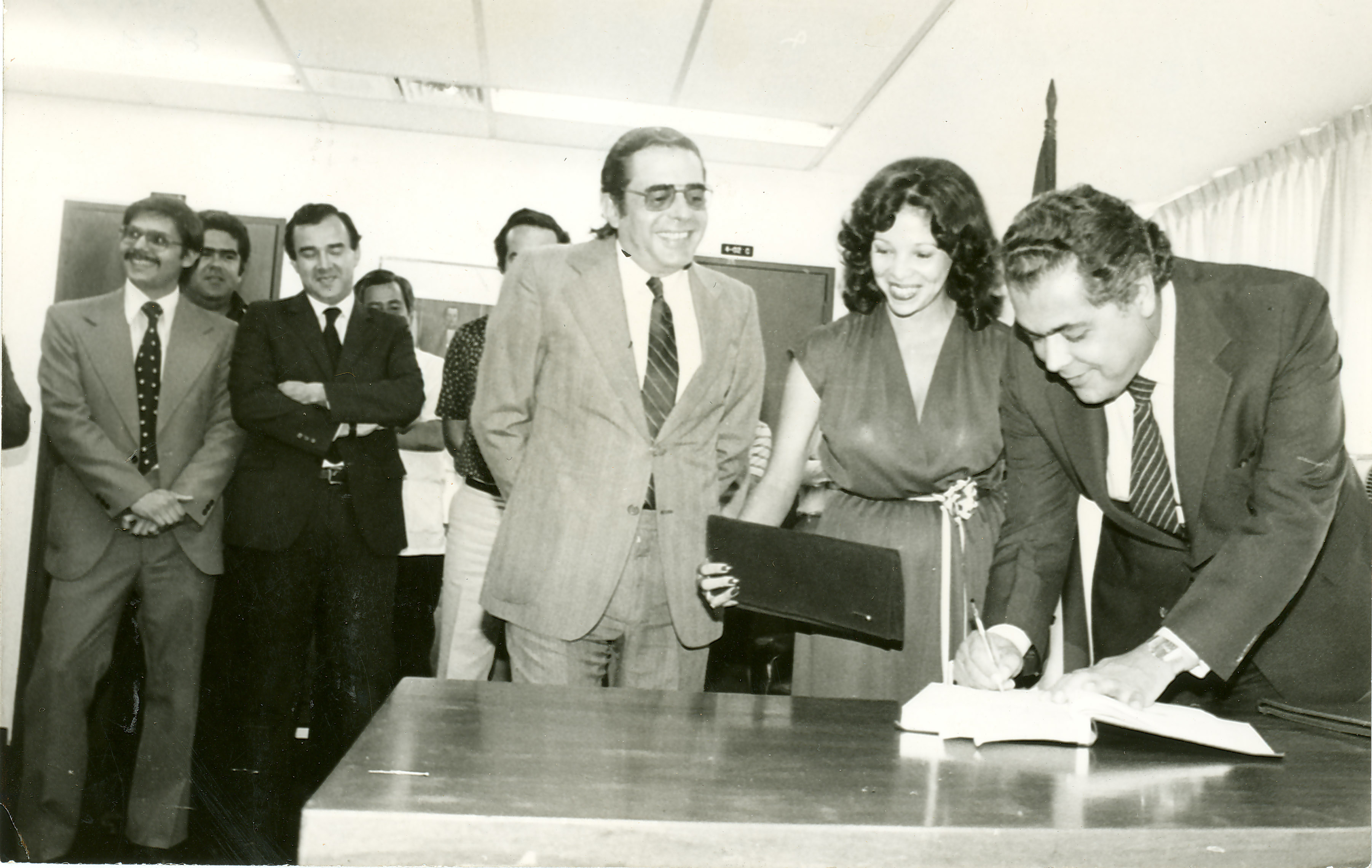 Guerrero, L. & Diario Occidente (1981). Posesión de María Eugenia Osorio como secretaria de tesorería municipal ante el alcalde Rodrigo Escobar Navia. Santiago de Cali: Biblioteca Departamental Jorge Garcés Borrero.