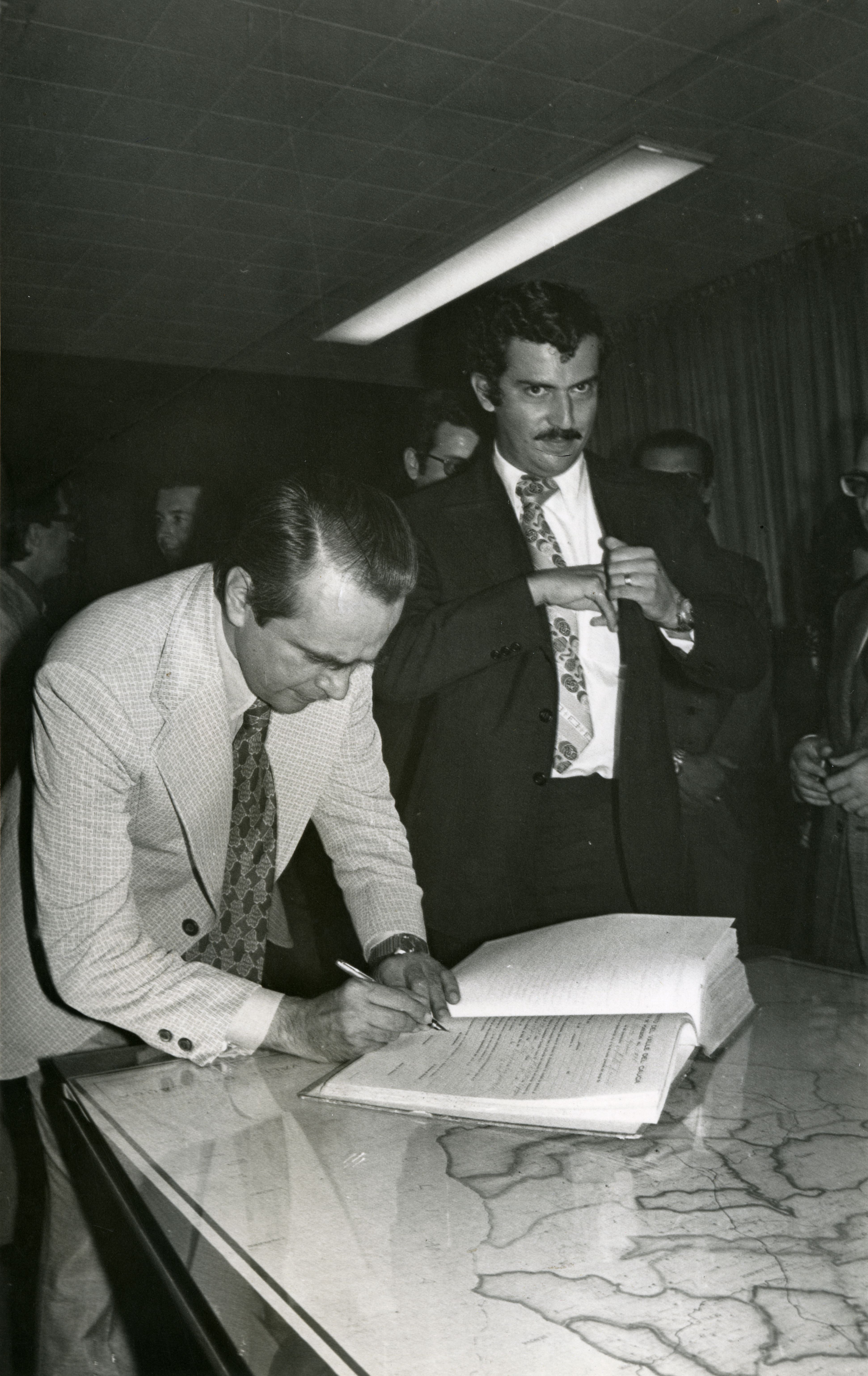 El gobernador Raúl Orejuela Bueno en su despacho firmando libro