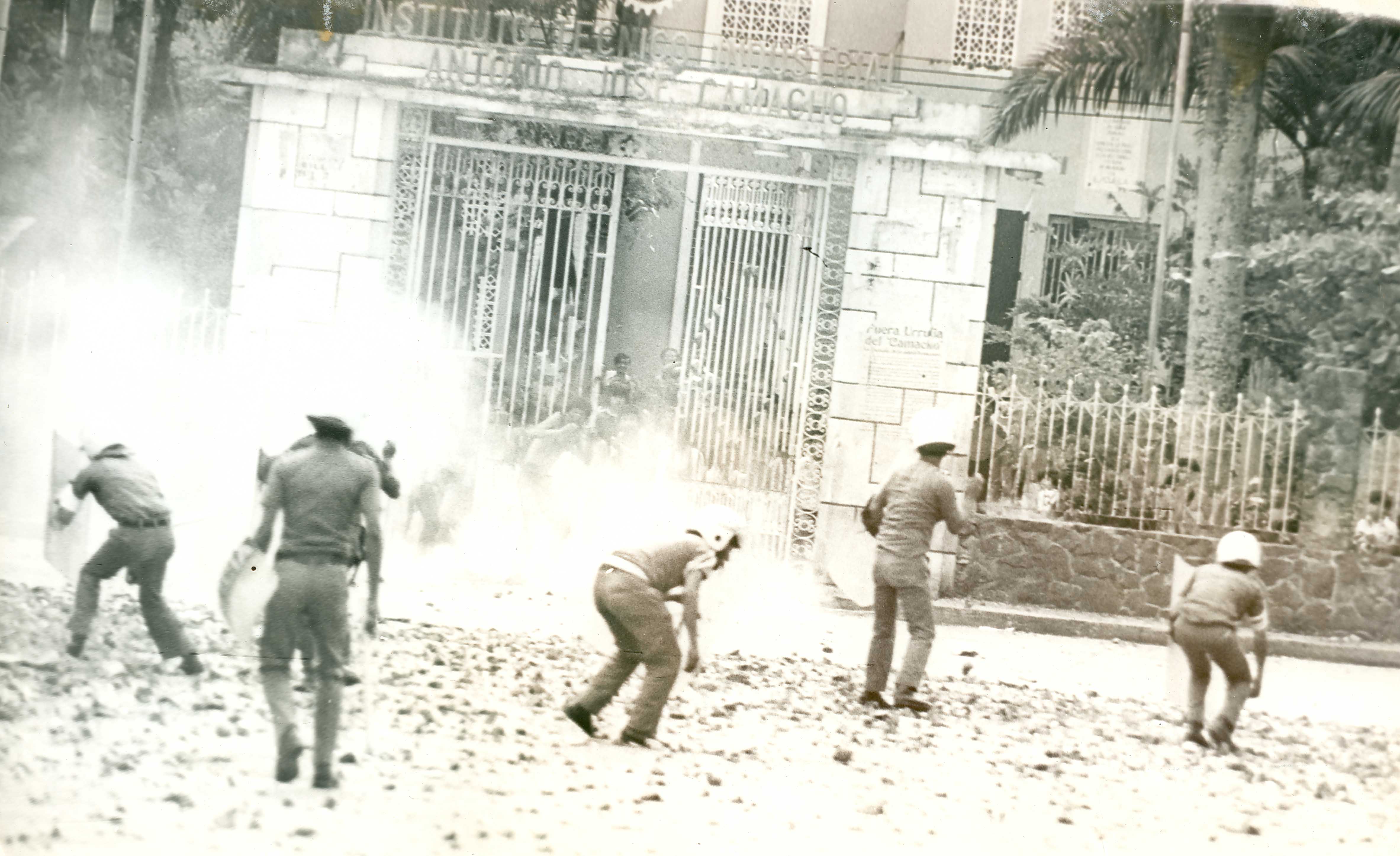Pedrea en protesta estudiantil en el Instituto Técnico Antonio José Camacho. El Archivo del Patrimonio Fotográfico y Fílmico del Valle del Cauca es responsabilidad de la Biblioteca Departamental del Valle Jorge Garcés Borrero, por convenio de cooperación suscrito con la Secretaria del Cultura Departamental, con el fin de aunar esfuerzos para su conservación, preservación y divulgación del Archivo entre la comunidad Vallecaucana, especialmente entre los estudiantes e investigadores que visitan la Biblioteca, propiciando el su uso y consulta permanente. La universidad Icesi es un colaborador en el proceso de difusión, facilitando la tecnología que permite la consulta de las imágenes.