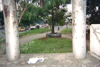 Silva Jaramillo, J. (2005). Primer plano de postes en alineación paralela, sirviendo de marco de parque y de calle. Santiago de Cali: Biblioteca Departamental Jorge Garces Borrero.