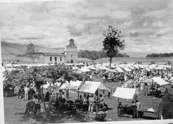 Día de mercado en la plaza frente ala iglesia. Florida, C. 1940.