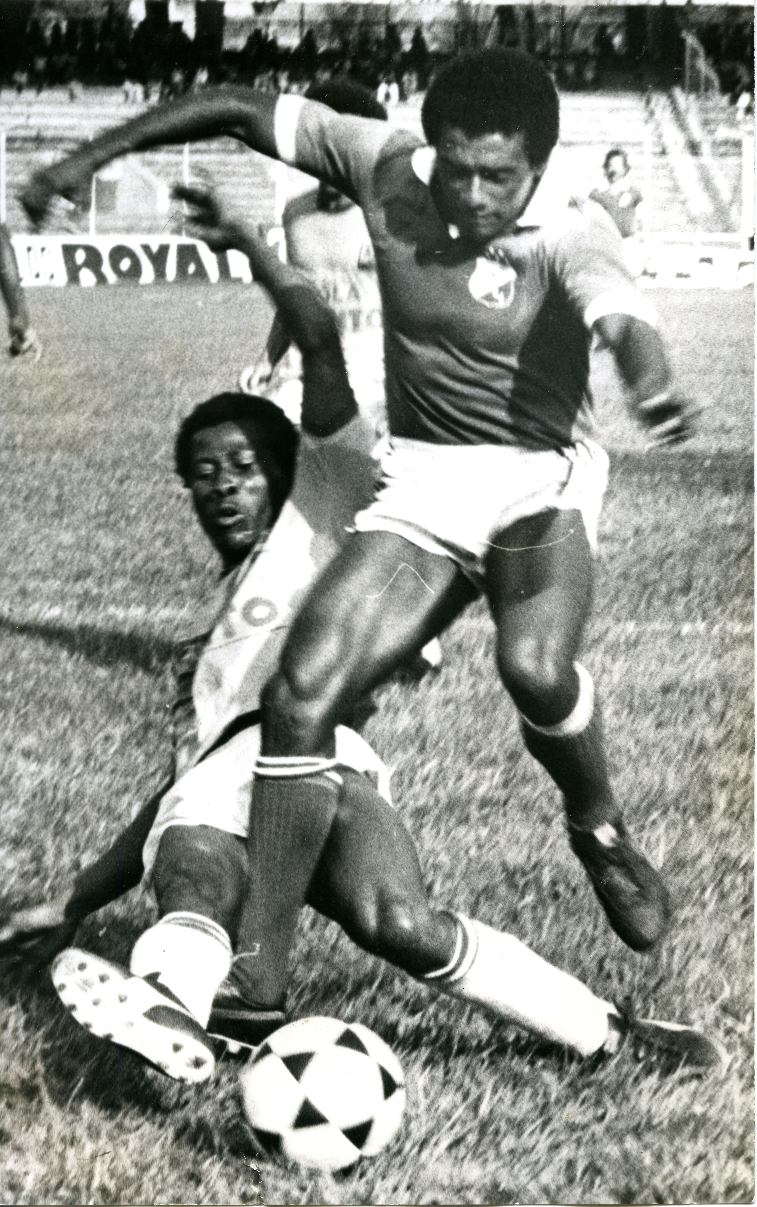 Foto cuerpo completo Gilmar Aponzá jugando con un balón que se encuentra en la esquina inferior izquierda