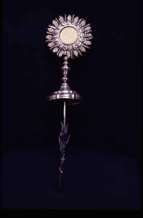 Custodia con lirio, en plata. Convento San Joaquín y Museo Religioso. Cali, C. 1995